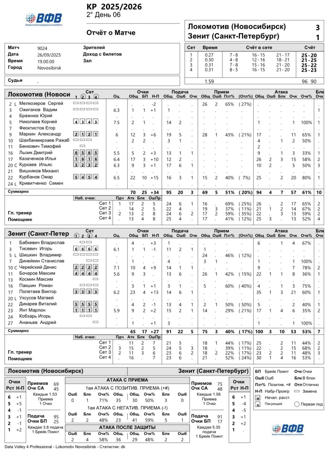 Локомотив (Новосибирск) — Зенит (Санкт-Петербург) — 3:1 (25:20, 21:25, 25:22, 25:23)